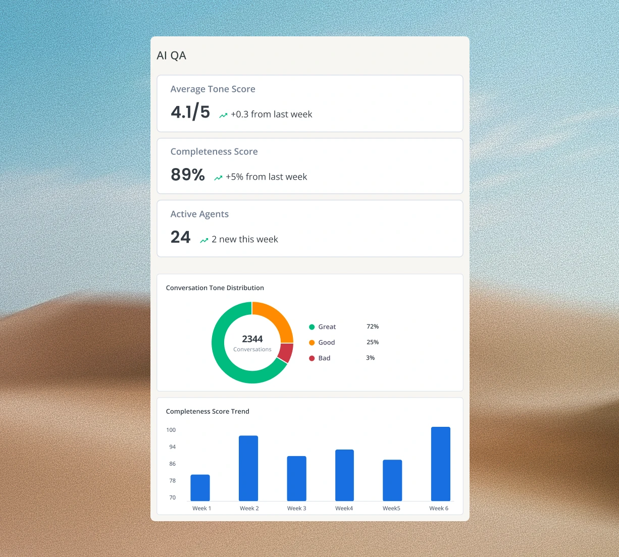 Evaluate agent responses in real time for tone, grammar, and completeness. Replace endless manual reviews with AI scores to save time and get an accurate picture of your team’s skill levels.