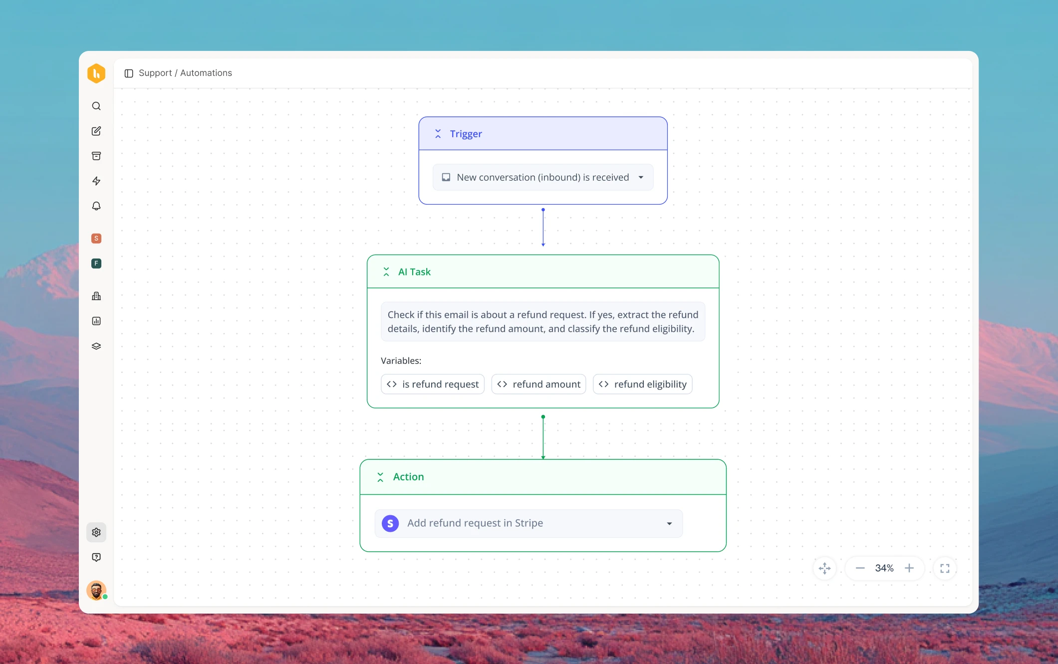 - AI TasksUse the powerful visual builder to create agents that can handle multi-step actions such as initiating customer refunds, sending follow-ups, updating external apps and more.