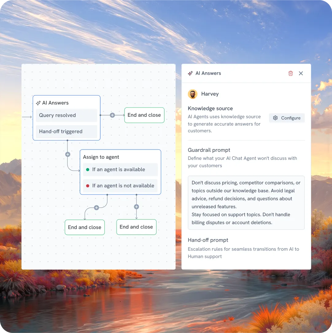 Your new AI teammate that drafts replies, pulls answers from knowledge sources, and suggests next steps.