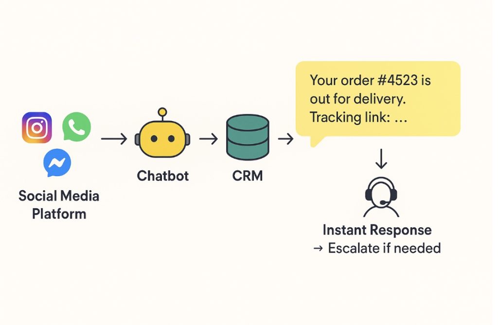 - Input: customer sends a message on Instagram, WhatsApp, or Messenger