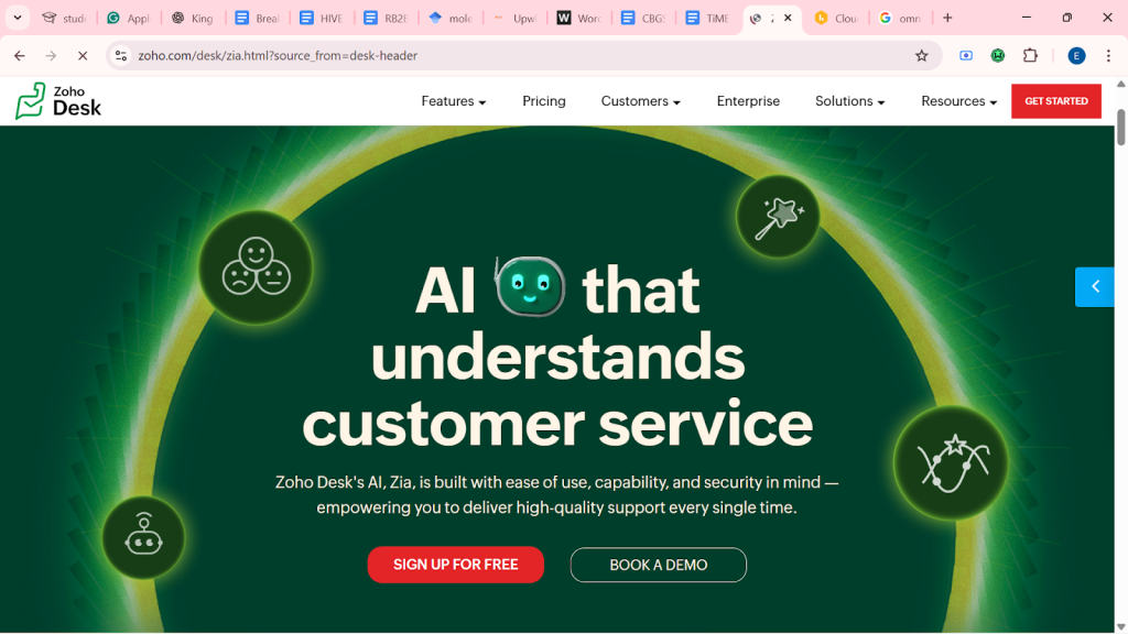 Zoho DeskBudget-friendly SMBsZia AI, workflow automationFrom $7/monthZoho CRM, Slack