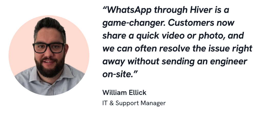 Fireco, a fire safety solutions provider, supports customers across the UK and handles queries over email, live chat, and WhatsApp. Because these channels were disconnected, agents had to switch tools, duplicate work, and risk missing urgent requests. To meet its goals, the team switched to Hiver to centralize all three channels into a single workspace. They can now see full conversation history, route queries to specialists fast, and respond quickly to emergencies. As a result, they managed to save 114 hours per month.