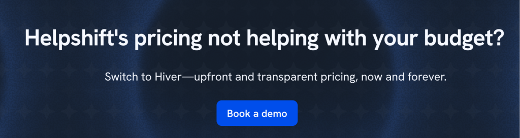 Also, Helpshift focuses mainly on in-app support with an issue-based pricing model that can get expensive as ticket volumes rise. Hiver gives you predictable per-agent pricing and covers every major channel.