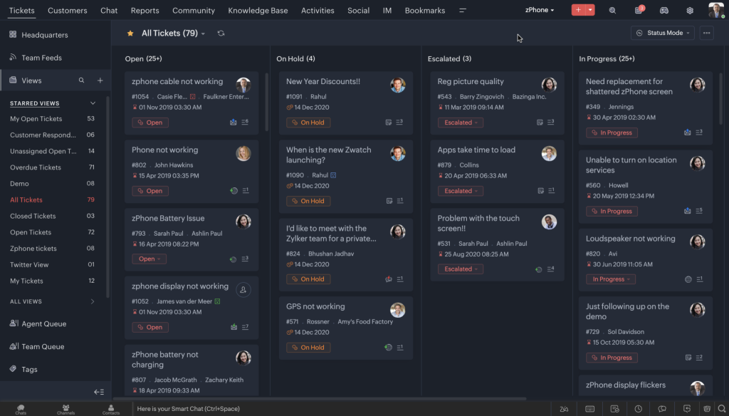 - Omnichannel ticketing system: Manage customer conversations across email, chat, WhatsApp, voice, SMS, and social channels from one clean interface. Assign, track, and resolve queries without juggling multiple tools.
