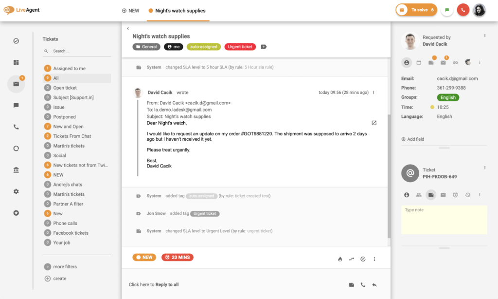 LiveAgent gives agents a single view showing ticket history, contact data and multi-channel interactions – all in one screen – whereas with Zendesk you often toggle between tabs and modules.
