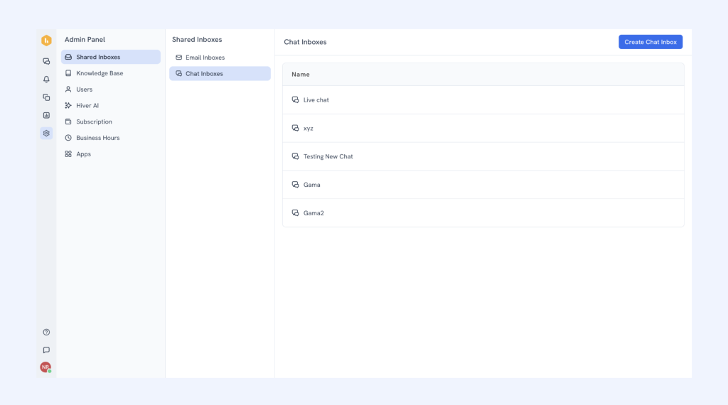 Once your account is set up, open Hiver Settings and launch the Admin Panel to start configuring your chat inbox.
