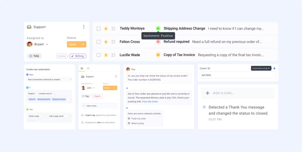 Hiver’s AI helps your teams stay organized and work smarter by automating daily tasks, tagging and routing conversations, and surfacing trends from real-time data. With AI built into every workflow, you deliver faster service while focusing on top priorities. Here’s what you get: