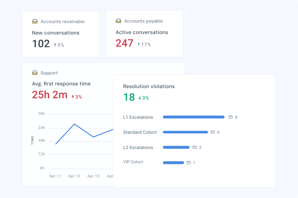 Tracks key metrics like response time, CSAT, and agent performance so managers can use those insights to optimize workflows and improve customer satisfaction.