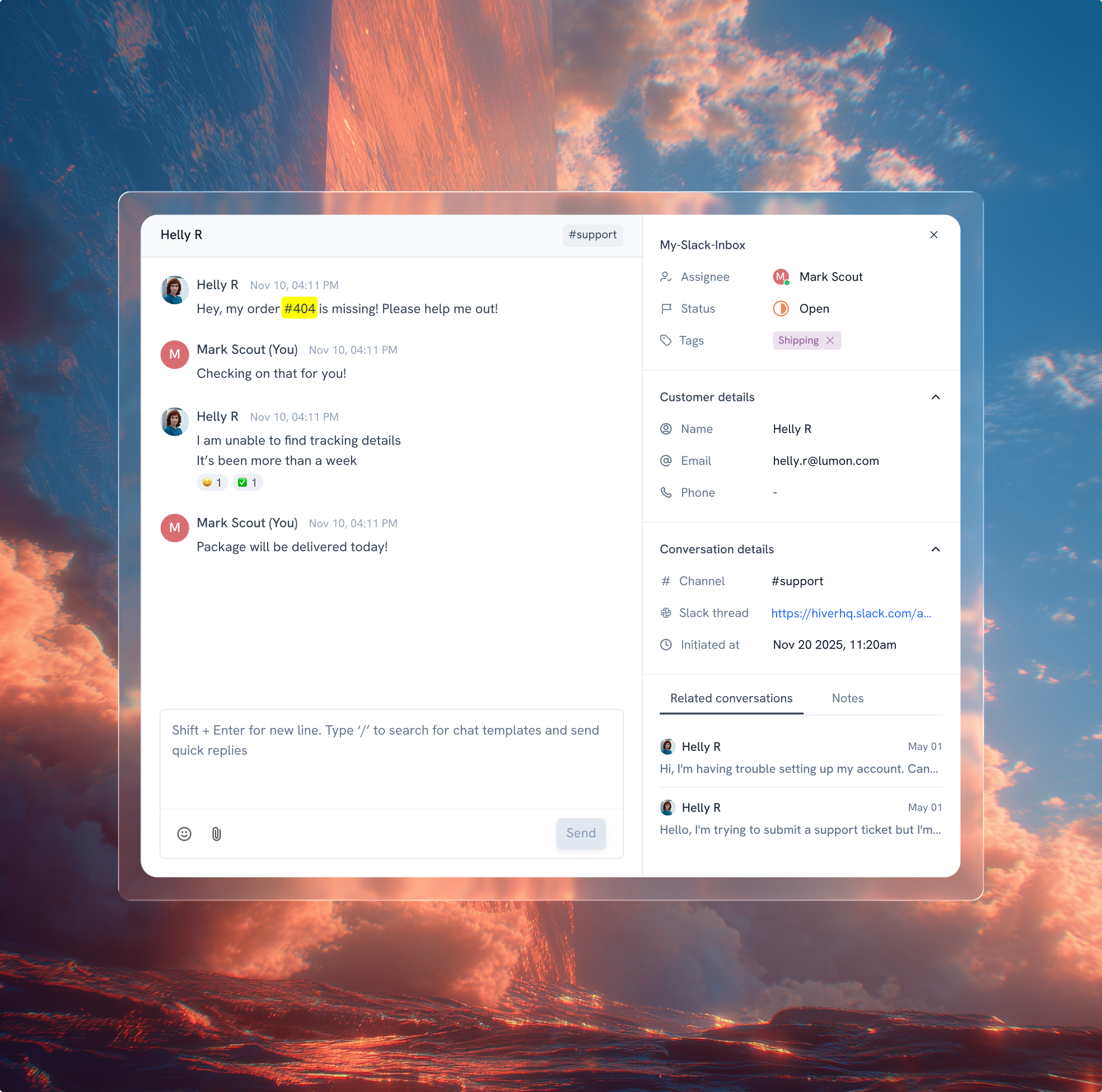 No more endless DMs, CCs, or forwards. Loop in teammates directly on tickets. Share context with product, engineering, and other teams, and manage internal Slack conversations within Hiver, all linked to the customer request.
