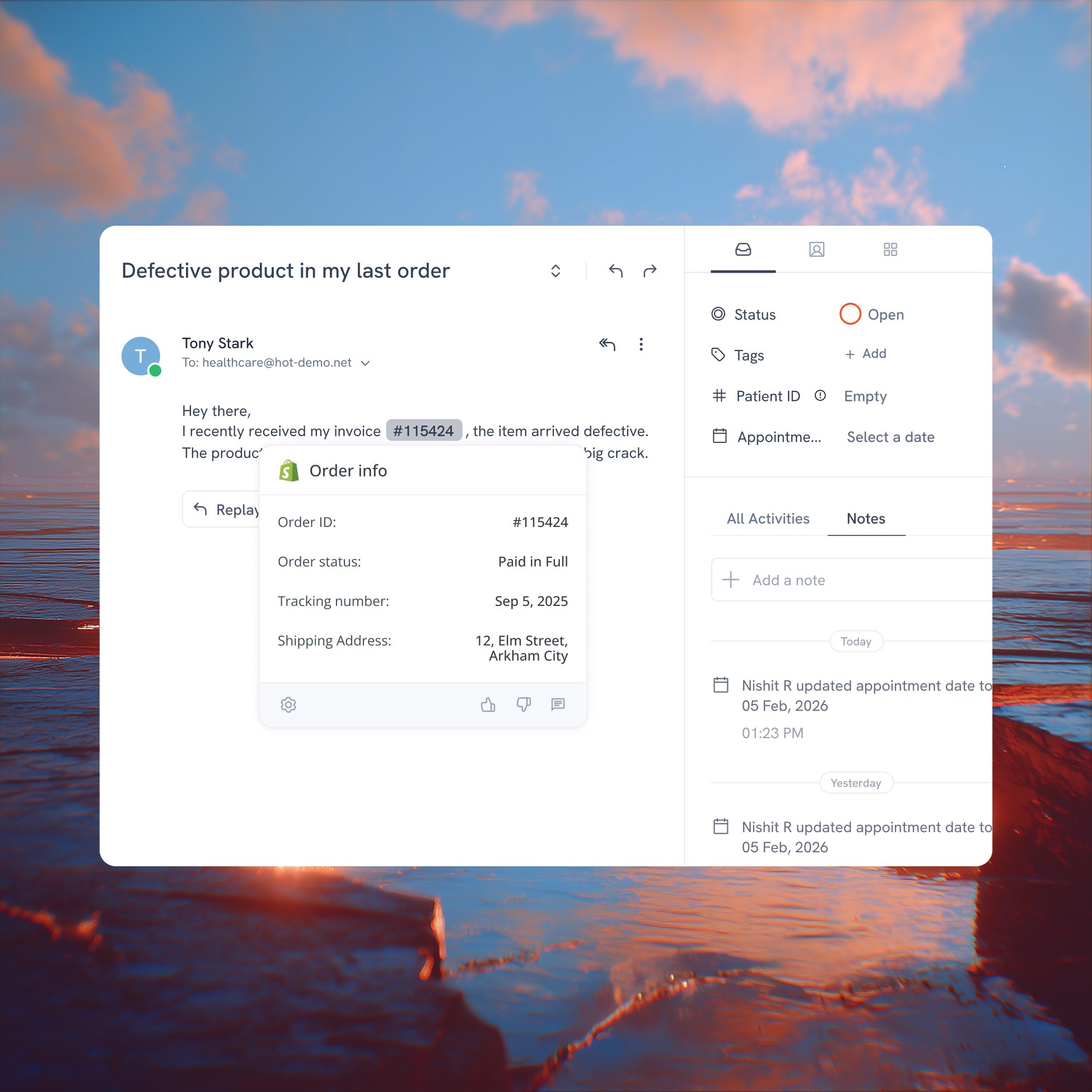Yes. Most native integrations sync customer data with conversations in real time or near real time. When account ownership, order status, or ticket information changes in connected systems, teams can see updated context directly inside Hiver.
